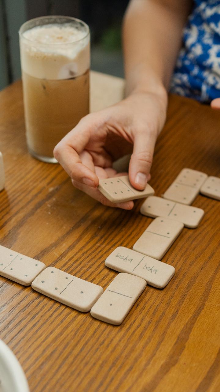 Dominó de cerámica de alta temperatura. Incluye 28 fichas y caja para almacenar fichas.