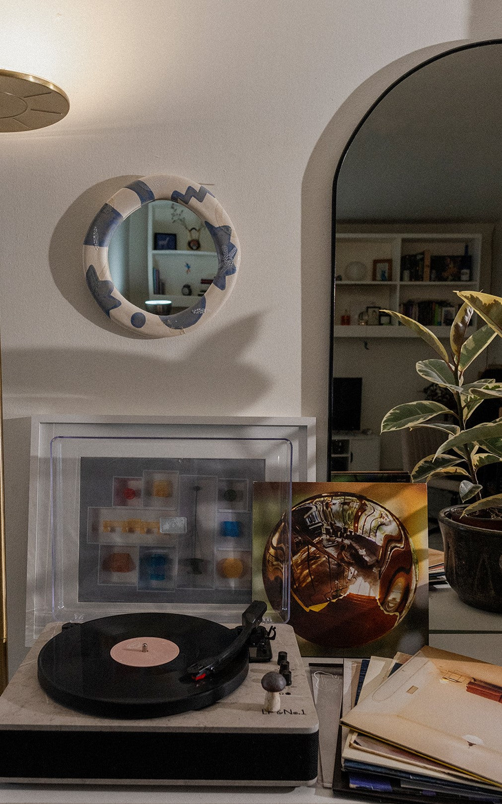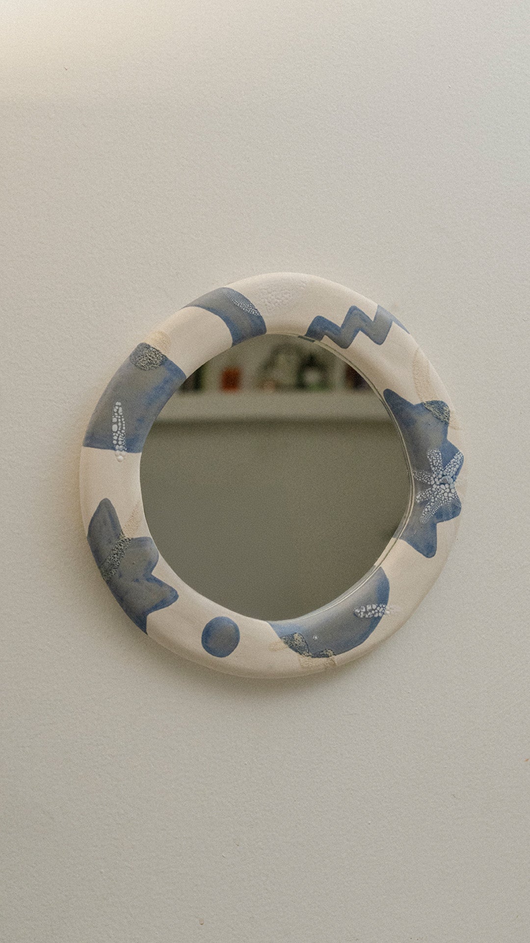 Espejo con marco de cerámica de alta temperatura.